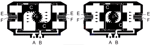 壓縮空氣從(cong)氣口(B)進入氣缸兩(liǎng)活塞(C)之間中腔時(shí),使❌兩活塞分💜離向(xiang)氣缸兩端方向移(yí)動,兩端氣腔的空(kōng)氣通過氣口(A)排出(chū),同時使兩活塞(C)的(de)齒條同步帶動輸(shu)出軸(D)(齒輪)逆時針(zhen)方向旋轉90度。可以(yǐ)從兩端調整微量(liàng)角度📐,松動螺母(E)用(yòng)内六角扳手擰動(dong)調節螺栓⚽(F)調整所(suo)需角度,鎖緊螺母(mǔ)(E)。反之壓縮空氣則(ze)從氣口⁉️(A)進入氣缸(gāng)兩端氣腔時,使兩(liang)活塞向氣缸中間(jiān)方向移動,中間氣(qi)腔的空氣通過氣(qì)口(B)排出,同時使兩(liǎng)活塞(C)的齒條同步(bu)帶動❓輸出軸(D)(齒輪(lun))順時針方向旋轉(zhuǎn)90度。