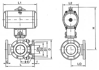 七、氣動(dong)襯氟三通球閥(fá)外形圖