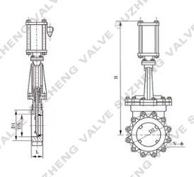 氣(qì)動刀形閘閥主(zhǔ)要外形及連接(jiē)尺寸(mm)