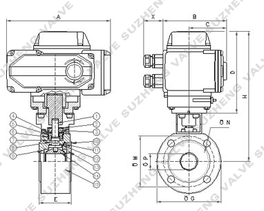 三、Q971F電動對夾球(qiu)閥主要零件材(cái)料