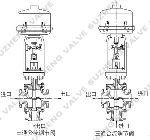 電動三通(tōng)調節閥流(liu)向指示圖(tu)